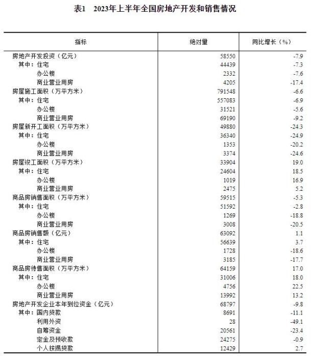 上半年,商品房銷售面積59515萬平方米,同比下降5.3%,其中住宅銷售面積下降2.8%。商品房銷售額63092億元,增長1.1%,其中住宅銷售額增長3.7%。