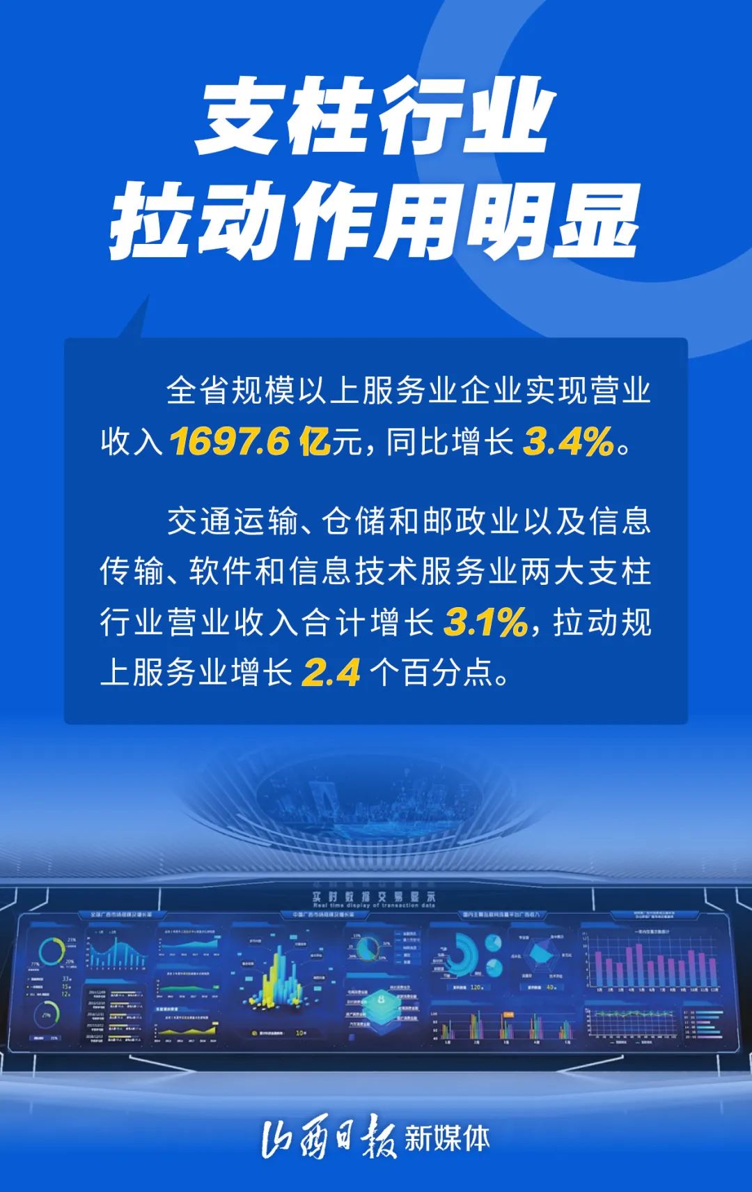 1至5月份,全省規(guī)模以上服務業(yè)延續(xù)平穩(wěn)增長態(tài)勢,支柱行業(yè)貢獻顯著,文旅相關(guān)服務業(yè)恢復向好,生活性服務業(yè)快速恢復。一組海報了解山西規(guī)模以上服務業(yè)運行情況。