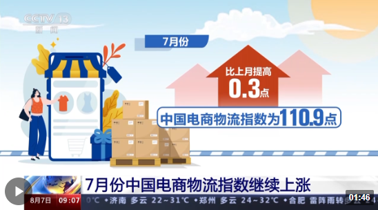 中國物流與采購聯合會今天(7日)公布了7月份中國電商物流指數。受益于供給端各項指數的穩(wěn)步上漲,中國電商物流指數較上月有所提高,繼續(xù)保持連續(xù)上漲態(tài)勢。