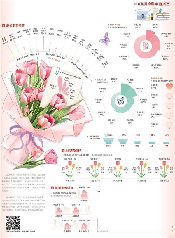 伴隨社會(huì)地位和經(jīng)濟(jì)實(shí)力的不斷提高,女性的消費(fèi)觀念和習(xí)慣正在發(fā)生轉(zhuǎn)變,她們在扮演好社會(huì)賦予的各種角色的同時(shí),愈加認(rèn)可自我價(jià)值,更加關(guān)注“為自己投資”“讓自己快樂”。數(shù)據(jù)顯示,女性群體在文化旅游、運(yùn)動(dòng)戶外、醫(yī)療保健等方面的消費(fèi)占比均有明顯增長,深度悅己、自我提升、健康養(yǎng)生成為她們的生活關(guān)鍵詞。