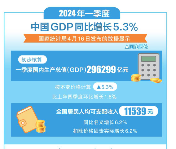 4月16日,中國經(jīng)濟2024年首季報出爐。國內生產(chǎn)總值同比增長5.3%,固定資產(chǎn)投資同比增長4.5%,高技術產(chǎn)業(yè)投資同比增長11.4%……一季度,中國經(jīng)濟增長較快、質效向好,實現(xiàn)良好開局。但嚴峻復雜形勢下,有效需求不足、社會預期偏弱等問題仍然存在,還需進一步鞏固和增強經(jīng)濟回升向好態(tài)勢。