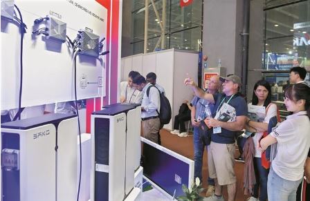 4月16日,采購商在第135屆廣交會(huì)上了解太陽能發(fā)電設(shè)備。電動(dòng)載人汽車(新能源汽車)、鋰電池和太陽能電池被稱為我國(guó)外貿(mào)“新三樣”。統(tǒng)計(jì)數(shù)據(jù)顯示,2023年,我國(guó)出口機(jī)電產(chǎn)品當(dāng)中,電動(dòng)載人汽車、鋰電池和太陽能電池等“新三樣”產(chǎn)品合計(jì)出口1.06萬億元,首次突破萬億大關(guān)?!靶氯龢印鳖I(lǐng)跑出口,激發(fā)外貿(mào)新動(dòng)能,推進(jìn)中國(guó)經(jīng)濟(jì)高質(zhì)量發(fā)展。本屆廣交會(huì)上,“新三樣”相關(guān)展區(qū)“光電鋰”交易持續(xù)火爆。 新華社記者 盧漢欣 攝