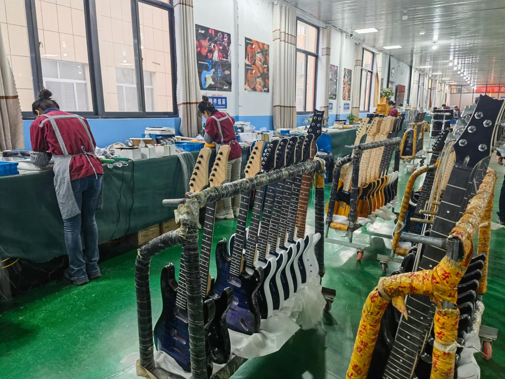 在鄌郚鎮(zhèn),許多人像李慶生一樣,他們未曾接受過專業(yè)音樂教育,但是在自身的努力和歲月的磨礪中,逐漸成長為技藝熟練的制琴工人。他們一刨一鑿打造的電吉他,跨越重洋,遠銷海外,給世界帶去歡樂。