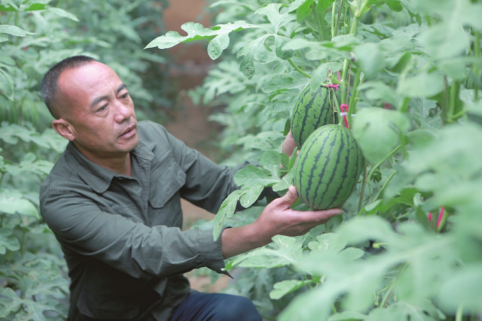 “西瓜僅有巴掌大小,平均不足3斤重。”邢俊成介紹,為確保每個(gè)西瓜都能充分吸收養(yǎng)分、保證品質(zhì),一株苗只保留一個(gè)瓜。在相鄰大棚內(nèi),幾名瓜農(nóng)正在“對(duì)花授粉”、疏蔓,每個(gè)西瓜都用“黑、紅、藍(lán)頭繩”標(biāo)記著授粉日期,通過精準(zhǔn)記錄生長周期,既避免了集中上市的價(jià)格壓力,又以“現(xiàn)摘現(xiàn)賣”的新鮮度鎖住了回頭客。