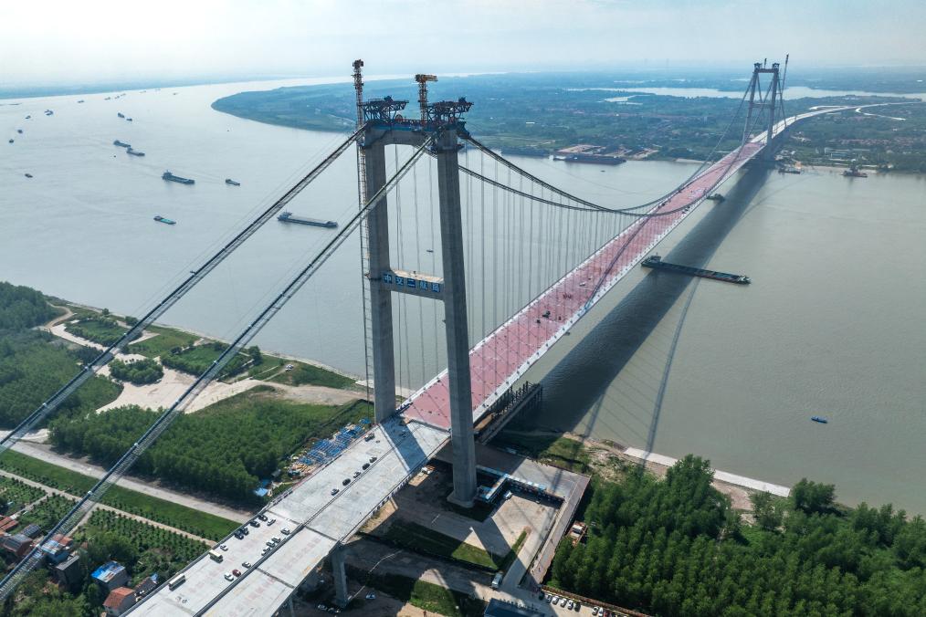 7月26日拍攝的合龍后的雙柳長江大橋(無人機照片)。新華社記者 肖藝九 攝??