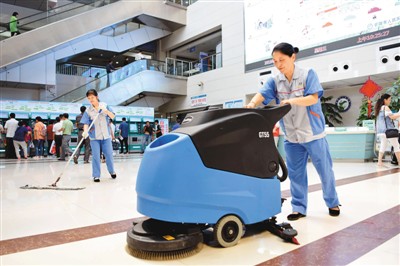 兩位清潔工在安徽省銅陵市人力資源和社會保障局開發(fā)的市人民醫(yī)院公益性崗位上工作。過仕寧 攝(人民圖片)
