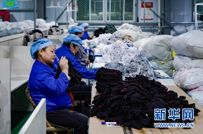 代縣扶貧產(chǎn)業(yè)園區(qū)雁弘紡織有限公司內(nèi),搬遷后的群眾實(shí)現(xiàn)了家門(mén)口就業(yè)。新華網(wǎng) 發(fā)