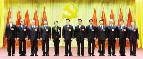 11月5日,中國共產(chǎn)黨山西省第十一屆委員會第一次全體會議在太原舉行,全會選舉產(chǎn)生了十一屆省委常委和書記、副書記,駱惠寧(左六)當選為省委書記,樓陽生(右六)、黃曉薇(左五)當選為省委副書記,高建民(右五)、孫紹騁(左四)、王偉中(右四)、盛茂林(左三)、任建華(右三)、羅清宇(左二)、張吉福(右二)、王清憲(左一)、廉毅敏(右一)當選為省委常委。山西日報記者 李聯(lián)軍 攝