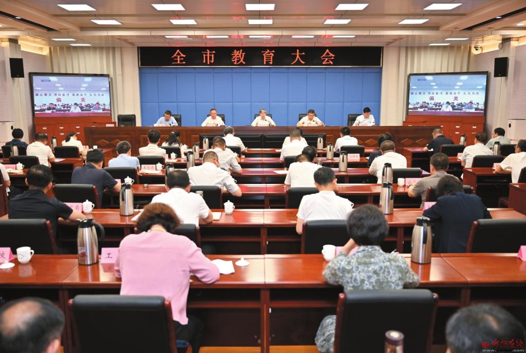 會議充分肯定近年來全市教育事業(yè)發(fā)展取得的成績,對教育強市建設各項重點工作作出全面部署。會議指出,要堅持不懈用習近平新時代中國特色社會主義思想鑄魂育人,一體化推進大中小學思想政治教育,培養(yǎng)德智體美勞全面發(fā)展的社會主義建設者和接班人。要堅持以人民為中心發(fā)展教育,推動義務教育優(yōu)質(zhì)均衡發(fā)展,促進學前教育普及普惠和高中階段學校多樣化發(fā)展,前瞻性優(yōu)化區(qū)域教育資源配置,持續(xù)鞏固“雙減”成果,不斷提升基礎教育服務質(zhì)量。要統(tǒng)籌實施科教興市、人才強市、創(chuàng)新驅(qū)動發(fā)展戰(zhàn)略,加快構建現(xiàn)代職業(yè)教育體系,增強高等教育綜合實力,培育壯大科技創(chuàng)新力量,不斷塑造高質(zhì)量發(fā)展新動能新優(yōu)勢。要強化師德師風建設,優(yōu)化完善教師管理體制,厚植尊師重教社會風尚,大力培養(yǎng)鍛造一支師德高尚、業(yè)務精湛、結構合理、充滿活力的高素質(zhì)專業(yè)化教師隊伍。要進一步深化教育領域綜合改革,進一步擴大教育開放合作交流,進一步建設全民終身學習的學習型社會,充分激發(fā)教育高質(zhì)量發(fā)展的生機活力。