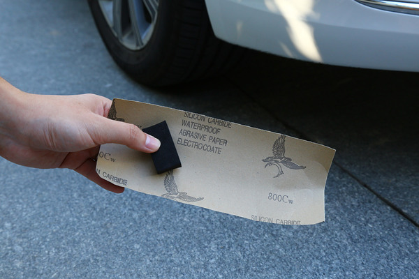 開始補(bǔ)漆作業(yè),先清洗劃痕位置以及周圍地方。先用800的砂紙進(jìn)行打磨,墊上一塊墊木沾一些水,可以更好掌握砂紙打磨時(shí)的力度。將劃痕處的漆面以及傷痕打磨平整并再次清洗擦干。