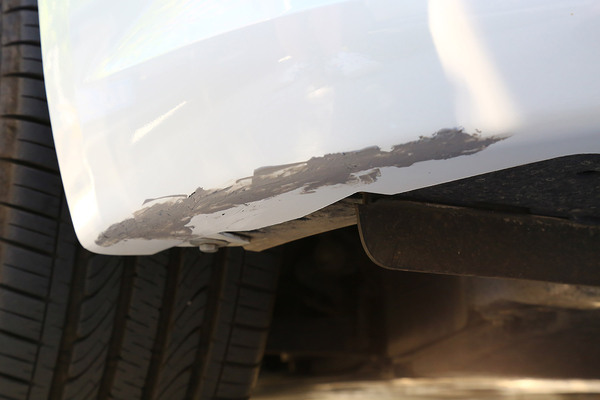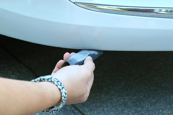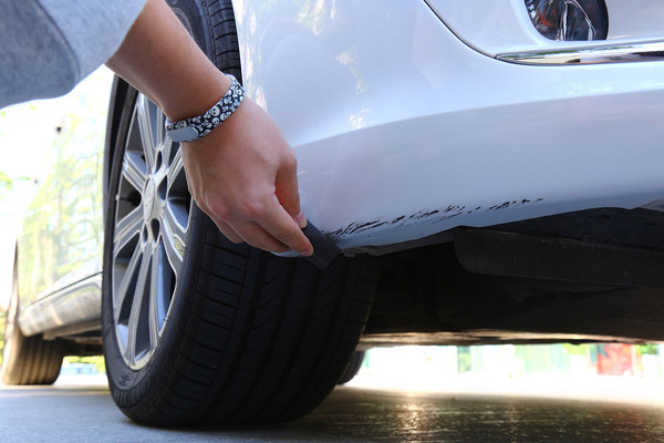 我們找來一輛前保險(xiǎn)杠底部被蹭得面目全非的可憐車,在選擇補(bǔ)漆工具時(shí)要根據(jù)劃痕的情況進(jìn)行合理選擇,不過就算是最嚴(yán)重的大面積傷及底漆的修補(bǔ)套裝,一般也不超過百元。
