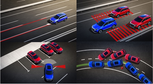 AI安全衛(wèi)士系統(tǒng)配置2個前雷達,3個倒車雷達,4個高清攝像頭,、360°隨動全景影像。