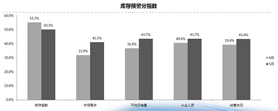 從庫存預警分指數來看,市場需求指數、平均日銷量指數、從業(yè)人員指數、經營狀況指數環(huán)比上升,庫存指數環(huán)比下降。