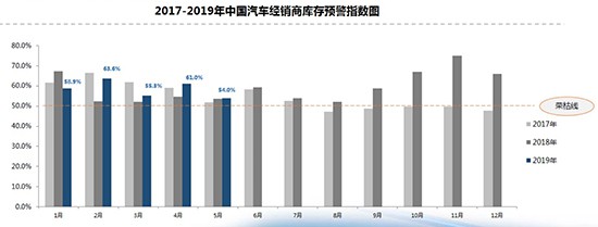 昨日(6月3日),中國汽車流通協會發(fā)布數據顯示,5月汽車經銷商庫存預警指數為54.0%,環(huán)比回落7個百分點,同比上升0.3個百分點,仍位于警戒線之上。