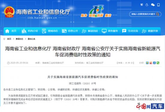 5月21日訊 記者日前從海南省工業(yè)和信息化廳網(wǎng)站獲悉,海南省工業(yè)和信息化廳、海南省財(cái)政廳、海南省公安廳發(fā)布了《關(guān)于實(shí)施海南省新能源汽車促消費(fèi)臨時(shí)性政策的通知》。