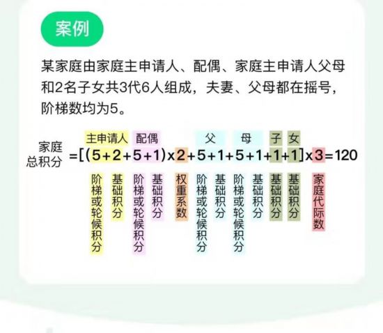 無論是幾代人家庭,家庭與個人都是在一個池子里搖號。家庭總積分和個人階梯數(shù)即為該家庭或個人的申請編碼出現(xiàn)在搖號池中的次數(shù),申請編碼出現(xiàn)的次數(shù)越多,中簽率越高。