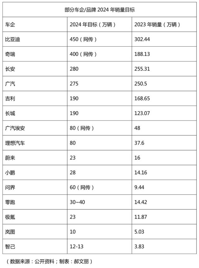 國內(nèi)各大汽車集團(tuán)穩(wěn)扎穩(wěn)打,根據(jù)2023年的實(shí)際銷量,多數(shù)車企2024年的目標(biāo)屬于“踮起腳尖夠得著”。