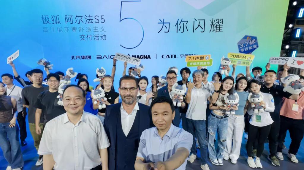 除北汽集團(tuán)之外,核心零部件合作伙伴寧德時(shí)代董事長(zhǎng)兼CEO曾毓群、整車智造合作伙伴麥格納斯太爾整車事業(yè)部全球總裁羅蘭·普雷特納,兩位世界級(jí)巨頭也同時(shí)現(xiàn)身活動(dòng)現(xiàn)場(chǎng),在業(yè)界首次“合體”為阿爾法S5首批用戶交車。