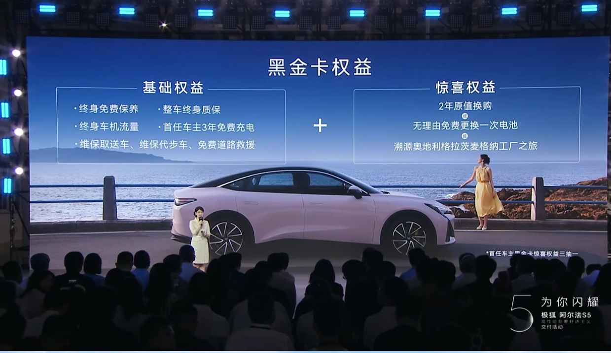 阿爾法S5交付的同時(shí),“三巨頭”還為首批用戶帶來(lái)價(jià)值不菲的黑金卡權(quán)益,包括終身免費(fèi)保養(yǎng)、首任車主3年免費(fèi)充電、免費(fèi)道路救援,以及2年原值換購(gòu)、無(wú)理由免費(fèi)更換一次電池、溯源奧地利格拉茨麥格納工廠之旅等實(shí)打?qū)嵉暮枚Y,并且此后還將定期抽取幸運(yùn)用戶持續(xù)發(fā)放黑金卡權(quán)益,開創(chuàng)汽車行業(yè)交付價(jià)值感的新境界。