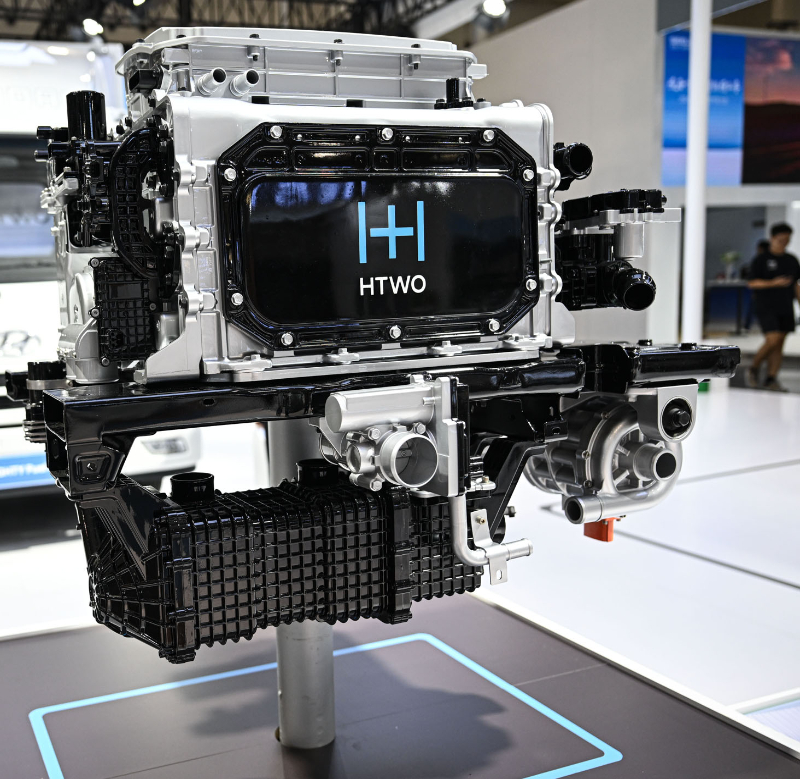 圖為在現(xiàn)代汽車集團(tuán)展臺拍攝的氫燃料電池系統(tǒng)。新華社記者 蒲曉旭 攝