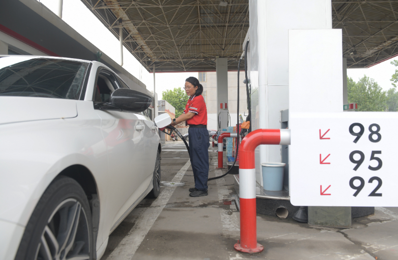 (資料圖片)一家加油站的工作人員給汽車(chē)加油。新華社發(fā)(賈敏杰 攝)
