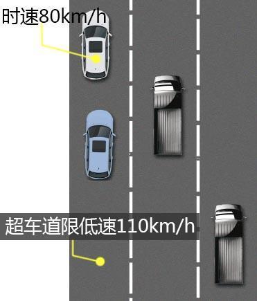 超車道顧名思義,是給想以較高車速行駛的車輛進(jìn)行超車或行車時(shí)使用的。時(shí)速在110km/h(部分路段為90-100km/h,以實(shí)際指示標(biāo)示為準(zhǔn))以下的慢車并沒有在超車道行車的權(quán)利。