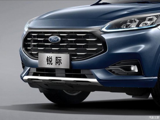 外觀來看,福特銳際整體基本延續(xù)了海外全新翼虎設(shè)計,高配版車型還使用了針對中國市場專門設(shè)計的造型,采用了全新造型的六邊形前格柵,并在上方增加一根橫向鍍鉻飾條。同時福特車標(biāo)下移,嵌入到了格柵內(nèi)部。
