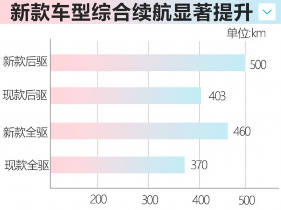 MARVEL X是榮威在2018年推出的一款A+級純電動SUV,在售車型包括兩電機后驅、三電機全驅兩款車型,綜合續(xù)航里程分別為403km、370km。日前,網上車市獲得了新款MARVEL X的相關消息,新車針對續(xù)航進行了大幅提升,兩電機后驅、三電機全驅兩款車綜合續(xù)航分別可達500km、460km。