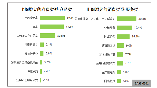 疫情期間線上消費比例增大的消費類型