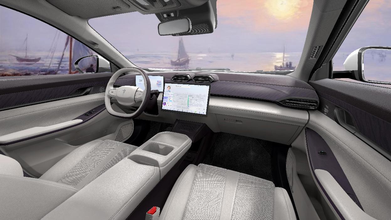 示界06以輕法式美學(xué)為設(shè)計(jì)基調(diào)。外觀采用鋒銳自由流線造型,琴弓弦月尾燈靈感源自小提琴弓造型,通過曲面轉(zhuǎn)折與立體光效,勾勒出如交響樂章般的光影韻律。車內(nèi)則以日出印象為靈感,營(yíng)造溫暖、松弛、充滿生活儀式感的視覺體驗(yàn)。標(biāo)配高通驍龍8155車規(guī)級(jí)芯片、電動(dòng)可開啟全景天窗、主駕座椅加熱通風(fēng)與記憶功能,擁有同級(jí)領(lǐng)先的NVH靜音水平,85%超軟PVC軟觸包覆,采用高溫粒子雙重烘烤工藝,TVOC釋放量?jī)?yōu)于國(guó)標(biāo),全方位護(hù)航駕乘健康,滿足每一位駕乘者的舒適體驗(yàn)。