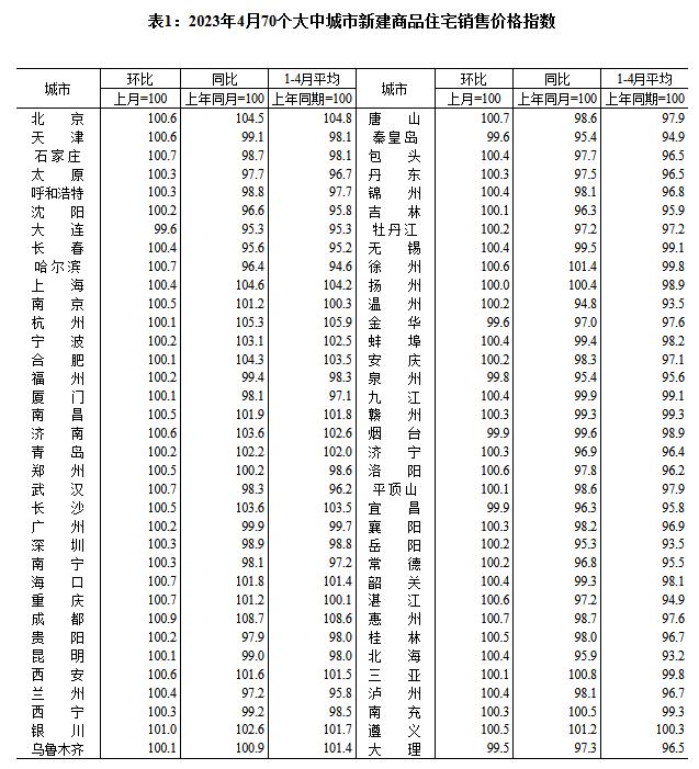 中新網(wǎng)5月17日電 國(guó)家統(tǒng)計(jì)局網(wǎng)站17日發(fā)布2023年4月份70個(gè)大中城市商品住宅銷售價(jià)格變動(dòng)情況,國(guó)家統(tǒng)計(jì)局城市司首席統(tǒng)計(jì)師繩國(guó)慶解讀表示,2023年4月份,70個(gè)大中城市中商品住宅銷售價(jià)格環(huán)比上漲城市個(gè)數(shù)減少,同比上漲城市個(gè)數(shù)增加。70個(gè)大中城市商品住宅銷售價(jià)格環(huán)比整體漲幅回落、二手住宅環(huán)比漲幅回落更為明顯,各線城市商品住宅銷售價(jià)格同比上漲或降勢(shì)趨緩。