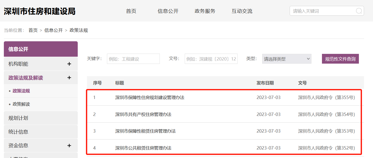 央廣網(wǎng)北京7月5日消息 據(jù)深圳市住房和建設局網(wǎng)站消息,7月3日,深圳市住建局發(fā)布《深圳市公共租賃住房管理辦法》《深圳市保障性租賃住房管理辦法》《深圳市共有產(chǎn)權住房管理辦法》《深圳市保障性住房規(guī)劃建設管理辦法》,具體來看,上述四項管理辦法,分別對公共租賃住房、共有產(chǎn)權住房、保障性租賃住房等三類住房的保障對象、申請條件、供應分配方式、租售價格標準、用地保障、建設籌集主體和渠道、建設標準、監(jiān)督管理等進行了規(guī)范。四項管理辦法將于8月1日正式實施。