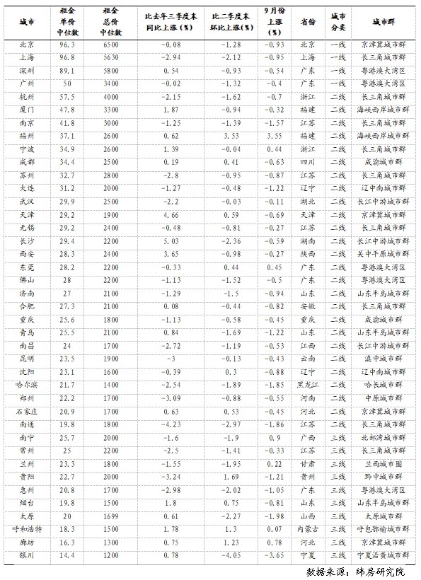 二線城市三季度住房租金掛牌價(jià)總體下降,少數(shù)城市租金微漲