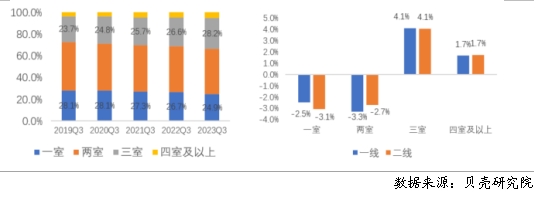 大戶型占比增加趨勢(shì)顯著,三居室成交占比首次超過(guò)一居室