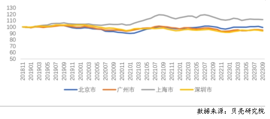 三季度住房租金掛牌價(jià)整體呈下降趨勢(shì)