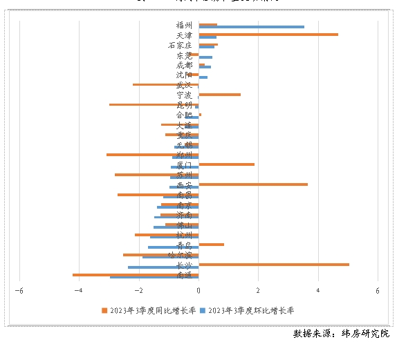 圖2 2023年三季度重點(diǎn)40城住房租金漲跌情況