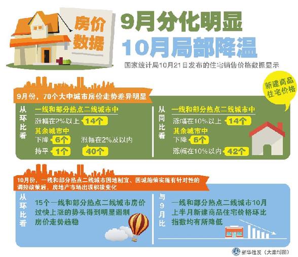 國(guó)家統(tǒng)計(jì)局城市司高級(jí)統(tǒng)計(jì)師劉建偉解讀房?jī)r(jià)數(shù)據(jù)時(shí)說(shuō),10月份,一線和部分熱點(diǎn)二線城市因地制宜、因城施策實(shí)施有針對(duì)性的調(diào)控政策后,房地產(chǎn)市場(chǎng)出現(xiàn)積極變化。