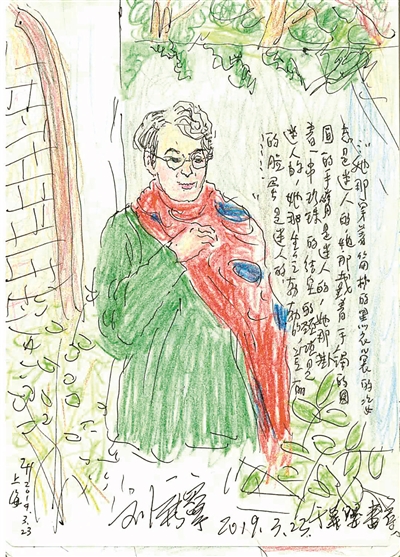 散場后,我請劉老師在我的畫本上簽名,夸她裹住消瘦雙肩的披巾好看,大塊的紅和深藍的圖案搭配,設計得非常藝術,頗具修養(yǎng)。這也是我對真正藝術家劉廣寧老師的贊美。一年零三個月過去,記憶中這是我和她交談的最后一句話。
