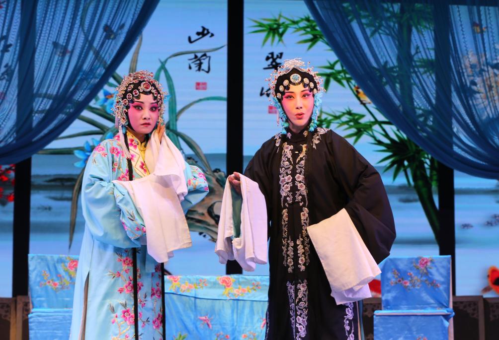 演員在甘肅省定西市體育公園演唱秦腔經(jīng)典傳統(tǒng)劇《打金枝》(9月19日攝)。新華社發(fā)(王克賢攝)