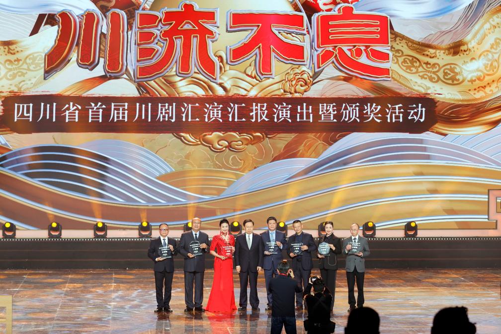當日,“川流不息”四川省首屆川劇匯演匯報演出暨頒獎活動在成都城市音樂廳舉行,集中展示川劇匯演成果,藝術(shù)呈現(xiàn)川劇藝術(shù)精粹,為優(yōu)秀劇目獎、特別貢獻獎、年度英才獎、組織工作獎頒獎。