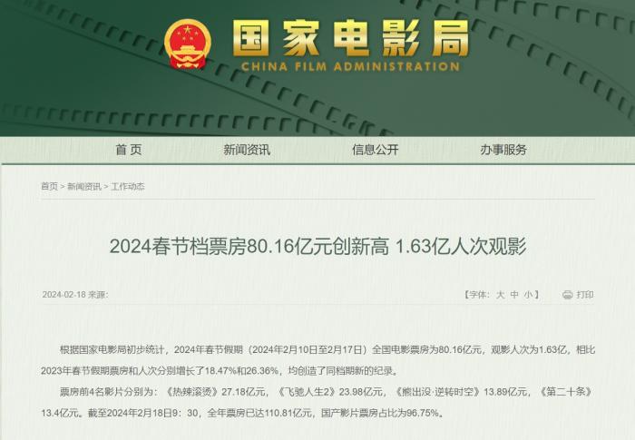 中新網(wǎng)北京2月23日電(記者 張曦)2024春節(jié)檔已進入尾聲。