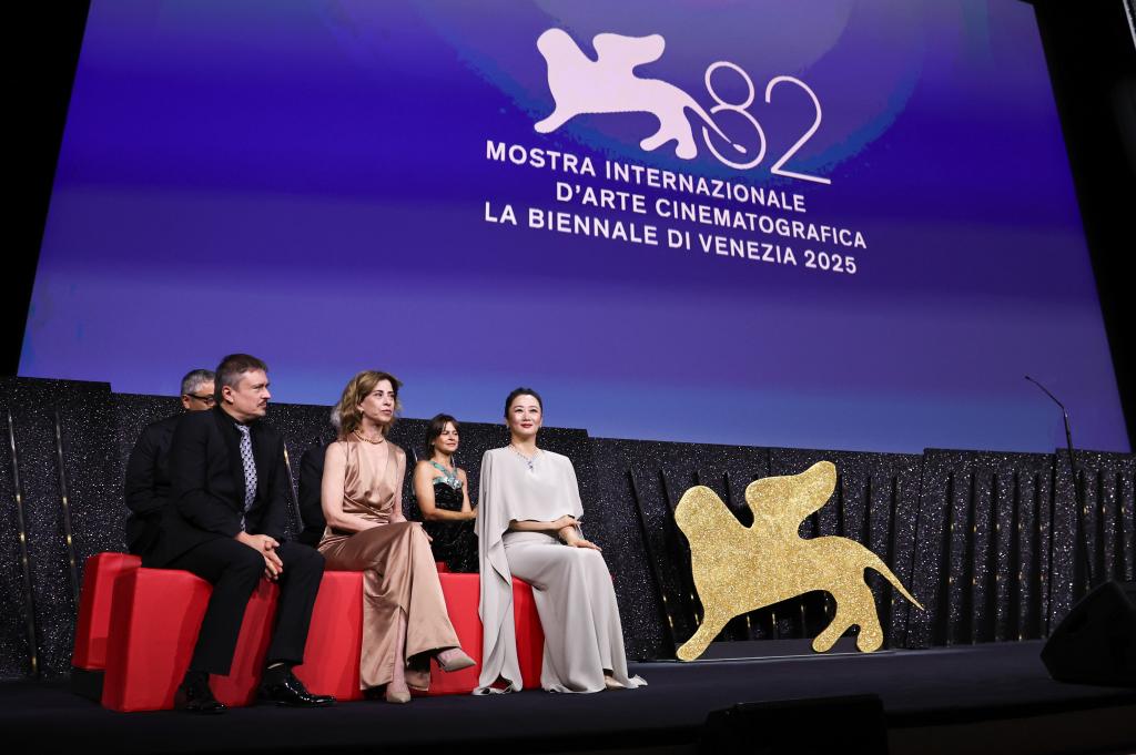 9月6日,在意大利威尼斯,主競賽單元評委出席閉幕式。新華社記者 李京 攝