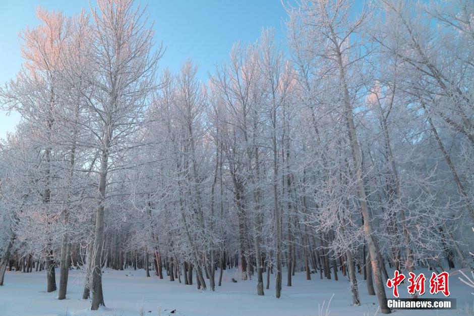 新疆阿勒泰罕見降雪后 現(xiàn)千里霜掛美景