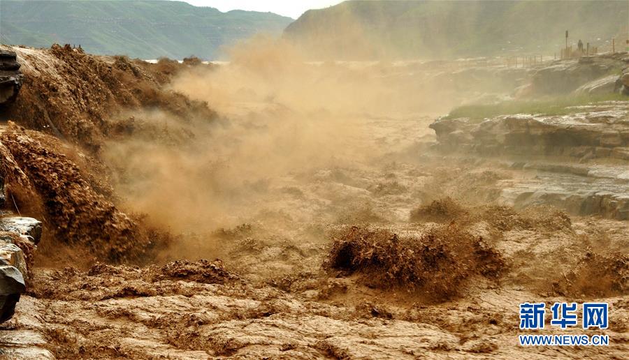 受上游強降雨影響,黃河壺口瀑布水勢大漲,主副瀑布連成一片。