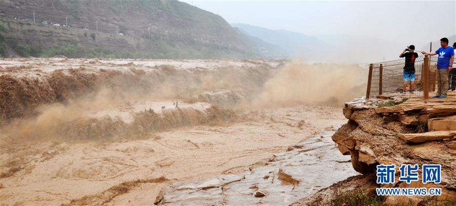 近日,受上游地區(qū)強降雨天氣影響,位于山西吉縣和陜西宜川縣交界的黃河壺口瀑布水量大漲。目前,壺口景區(qū)已啟動應(yīng)急預(yù)警,工作人員加強上游水情監(jiān)測并加大安全巡查力度,確保游客安全。新華社發(fā)(呂桂明 攝)