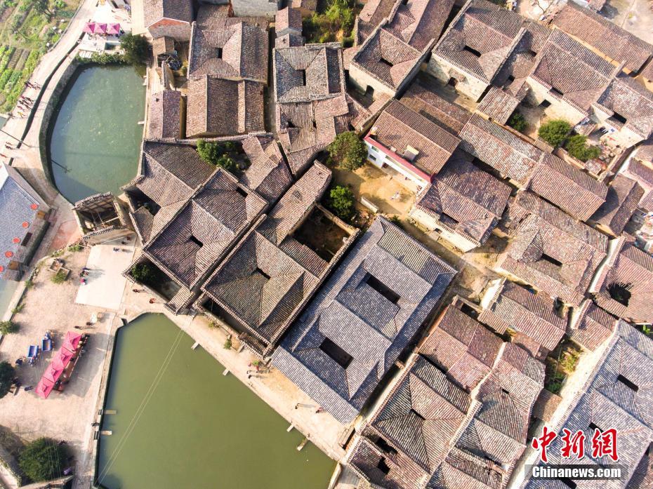 12月10日,航拍位于江西金溪縣有著600多年歷史的中國(guó)歷史文化名村、中國(guó)傳統(tǒng)村落竹橋古村,俯瞰全村,形似一柄巨扇。該村現(xiàn)保存有明代所建民居8幢,明代祠堂1幢,其余為清代建筑,青磚灰瓦,樸實(shí)素雅,為贛派建筑最典型的代表。村前溪水長(zhǎng)流,良田萬頃,村后茂林修竹,鳥鳴樹幽,身歷其境,如入畫中。傅建斌 攝