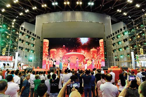 8月25日,第三屆文博會中心舞臺河曲二人臺表演吸引觀眾駐足觀看
