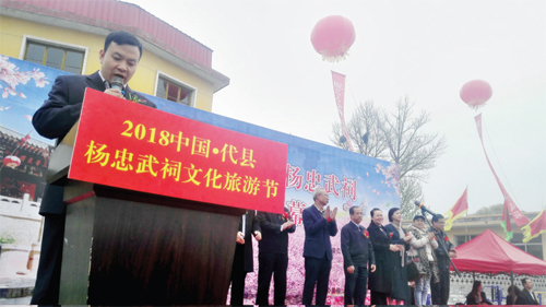 本報(bào)訊 為了弘揚(yáng)楊家將忠勇愛國的名將精神,提升楊忠武祠的知名度和影響力,由中共代縣縣委宣傳部、代縣文化旅游發(fā)展委員會(huì)、代縣新聞辦公室、代縣廣播電視臺(tái)主辦,代縣棗林鎮(zhèn)人民政府協(xié)辦的楊忠武祠文化旅游節(jié)4月13日——24日在鹿蹄澗村隆重舉行,此次旅游節(jié)嘗試文化+旅游+體育的模式促進(jìn)代縣文化旅游發(fā)展,旨在弘揚(yáng)傳統(tǒng)文化,助推鄉(xiāng)村振興,傳播健康綠色運(yùn)動(dòng)。