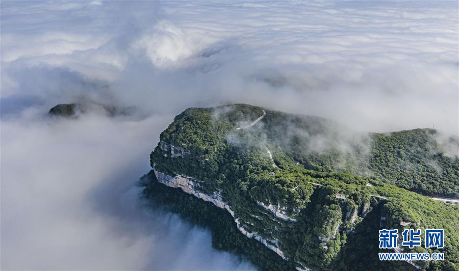 6月10日拍攝的漢中市南鄭區(qū)龍頭山景區(qū)的云海景觀(無人機照片)。 新華社記者 陶明 攝