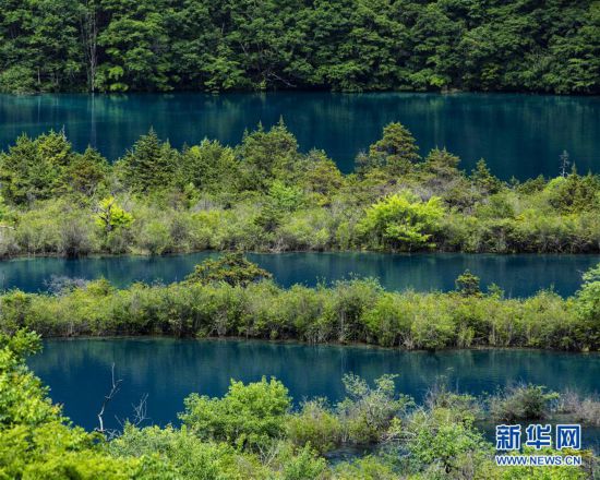 九寨溝風(fēng)景名勝區(qū)內(nèi)的“樹正群?!保?月18日攝)。新華社記者 沈伯韓 攝